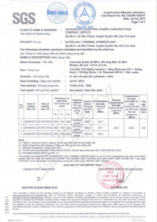 Kết quả thí nghiệm - loai BT: có kháng thấm PP1(12,5+-2,5)