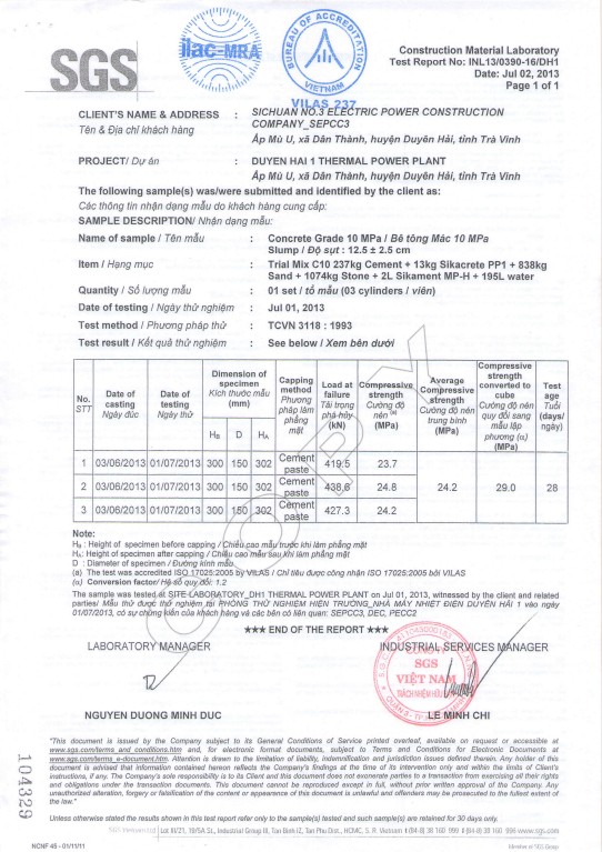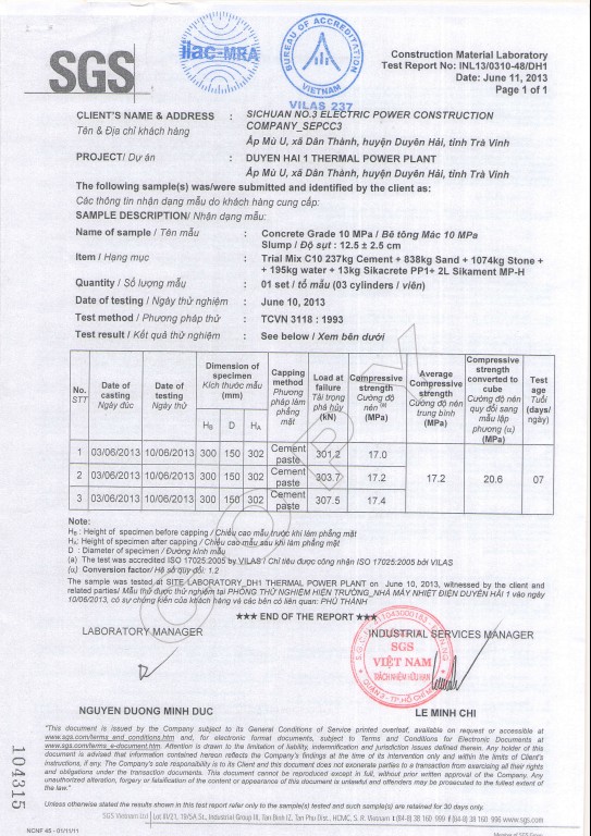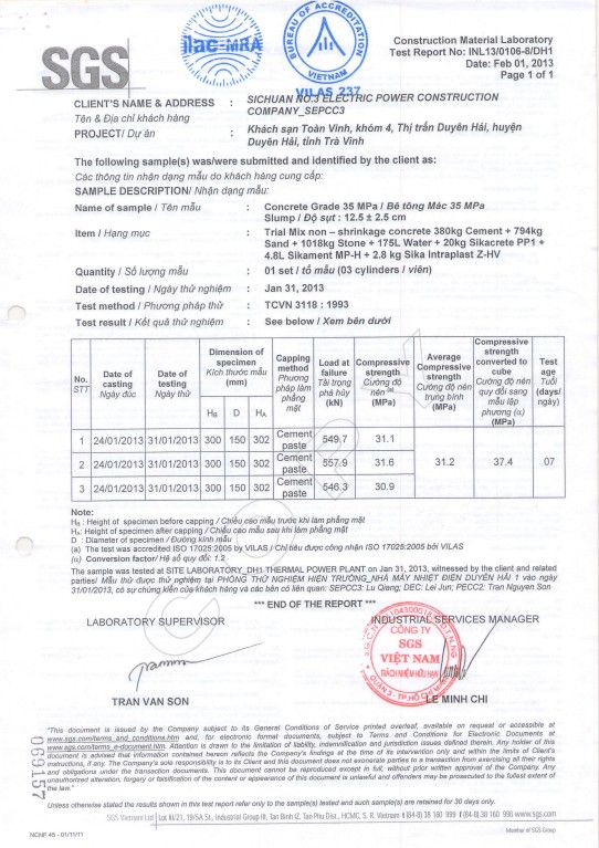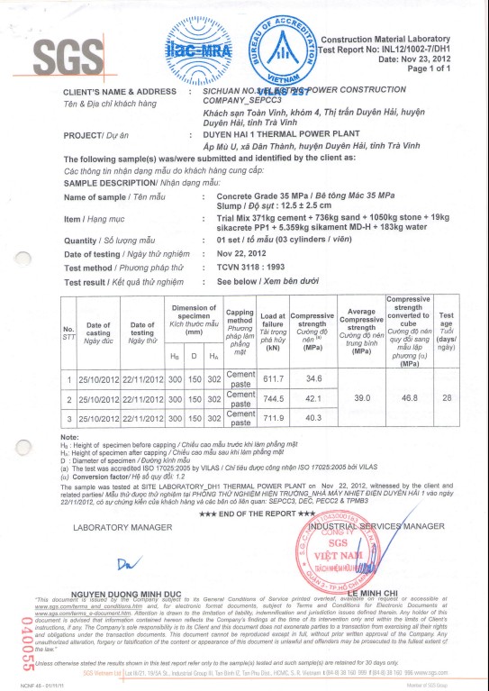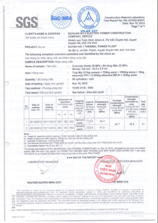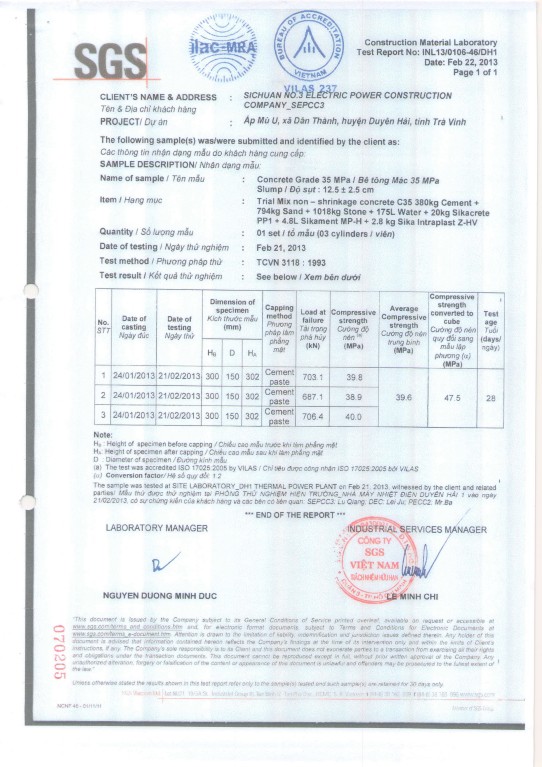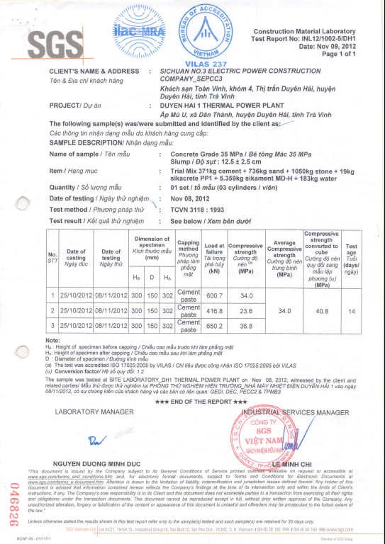 Kết quả thí nghiệm - loai BT: có kháng thấm PP1(12,5+-2,5)